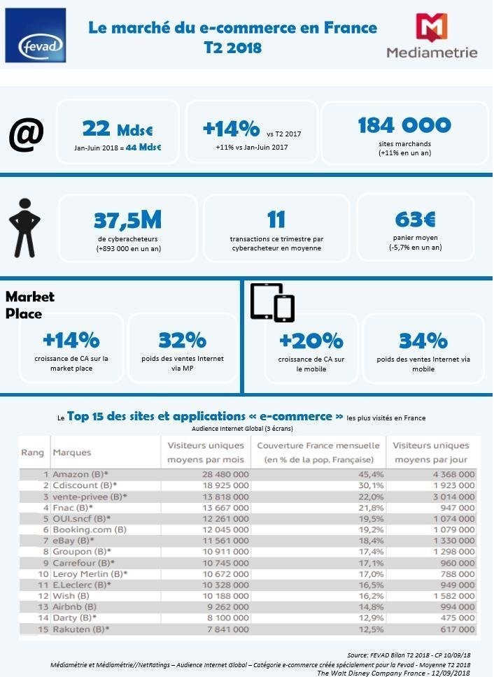 Le marché du Ecommerce français se porte très bien avec une croissance de 14% vs le 2ème trimestre 2017 qui est supérieure à la croissance du 1er trimestre 2018 (11%). Malgré une concurrence féroce, il y a tout de même plus de 11 000 nouveaux sites, portant le total des sites ecommerce en France à 184 000 !